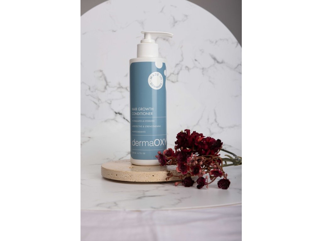 Kondicionér na rast vlasov DermaOXY je obsahuje výživnou zmesou rastlinných extraktov, vitamínov a peptidov, ktoré posilňujú vlasy od korienkov po končeky.
