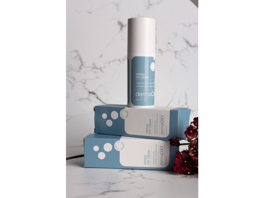 Očný krém PEPTIDE EYE DermaOXY® 15 ml redukuje jemné vrásky okolo očí, poskytuje a obnovuje rovnováhu hydratácie pokožky. Očný krém EYE DermaOXY® 15 ml obsahuje vysoko aktívny vitamín K (Hesperidin metyl chalcone), ktorý aktívne redukuje tmavé oblasti okolo oka zvýšením prietoku krvi a posilnením kapilár.